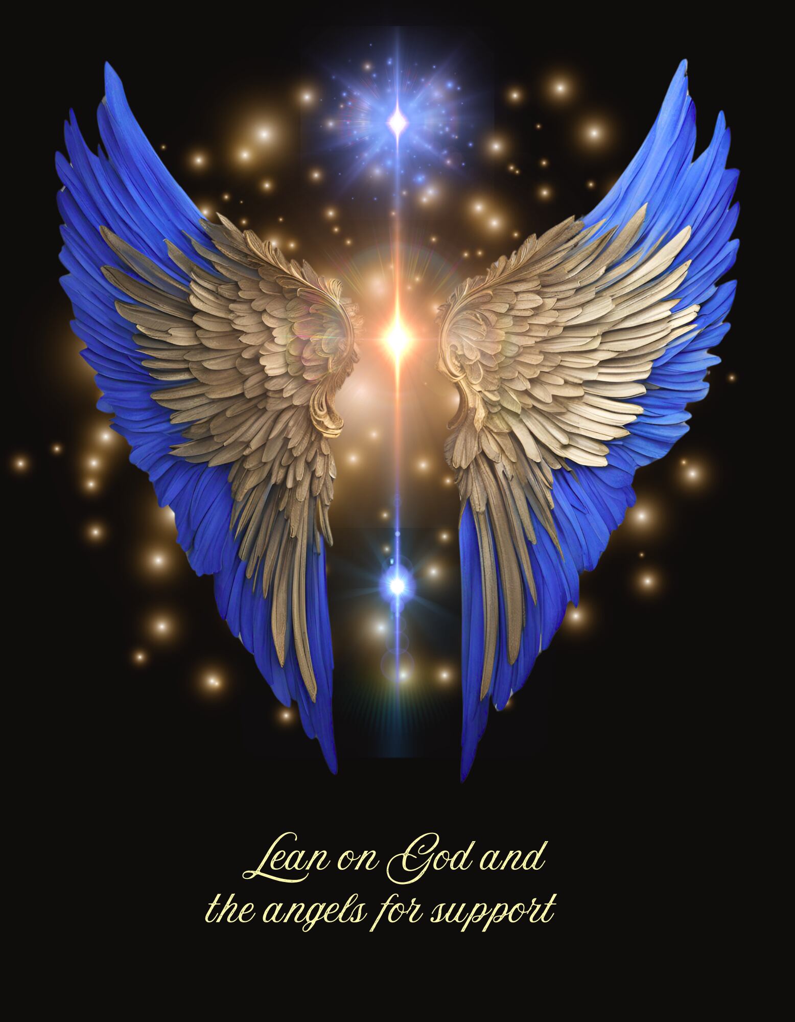 胸中央に光を背負って立つ大天使ミカエルの姿、背中中央には光輝く大天使ミカエルの翼をデザインしています。