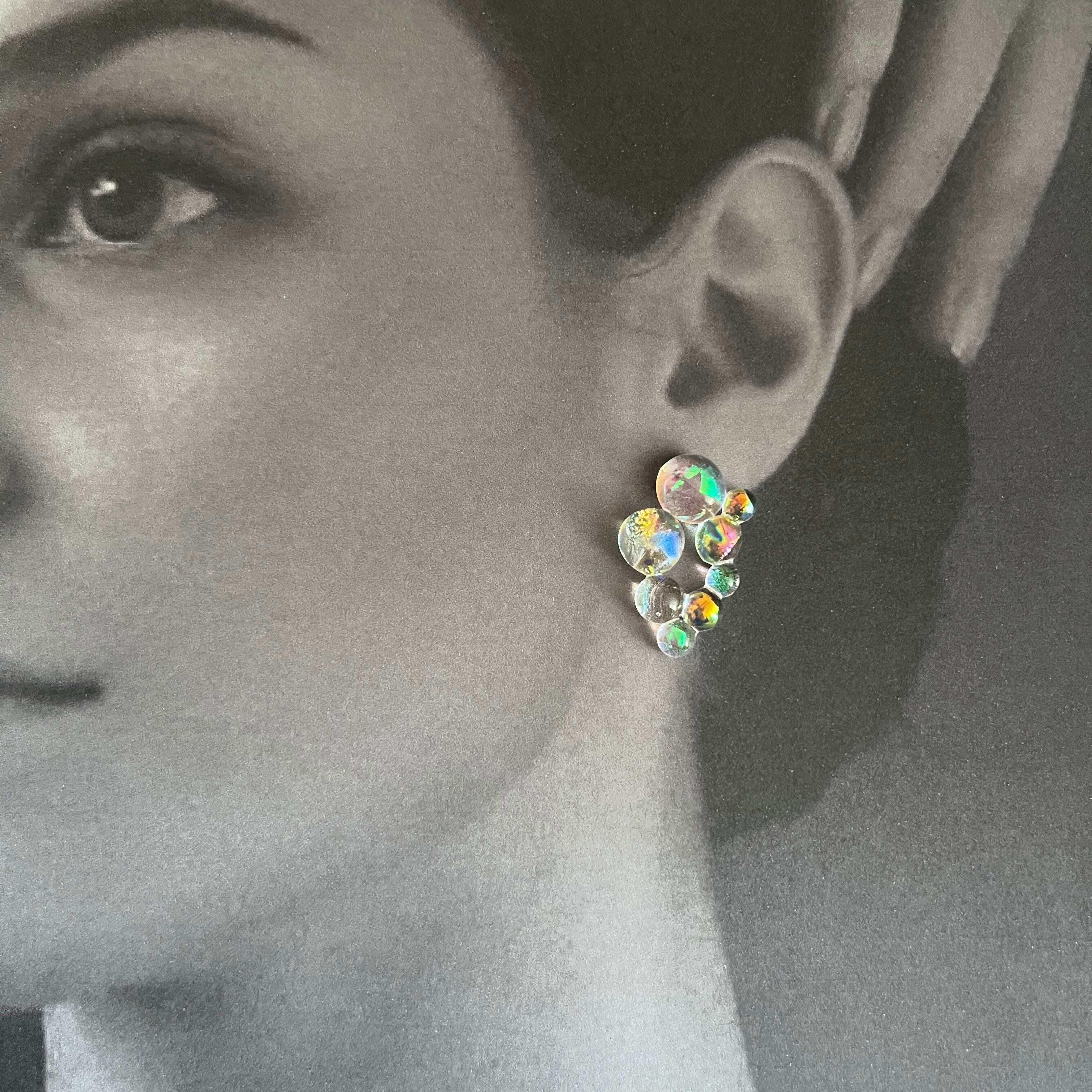 オーロラ水晶がキラキラ輝くキャッチをつけることができる2way仕様です。
