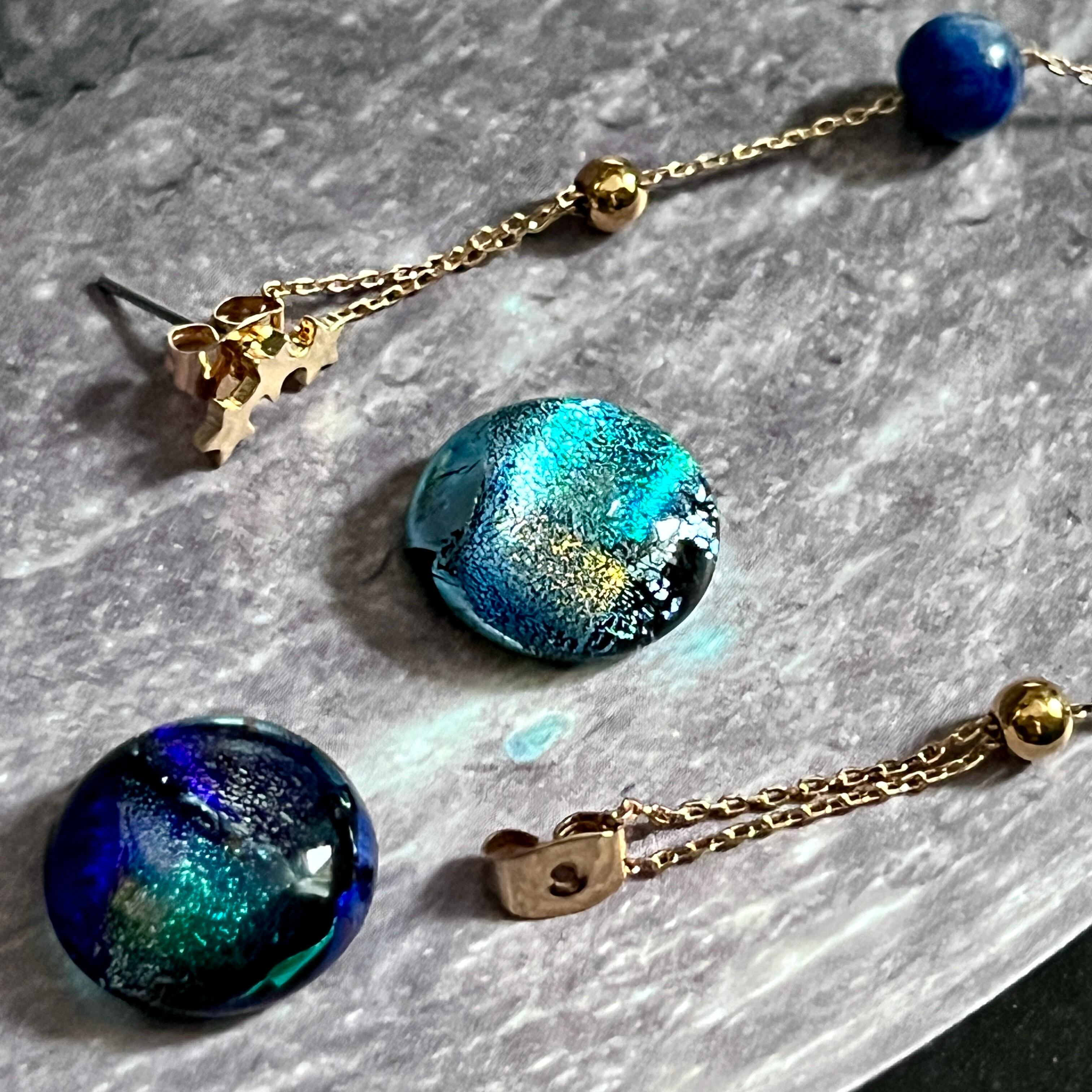 碧の月、銀の月、シリウスと星々★宇宙ガラスピアス 4個セット2way ラピスラズリ