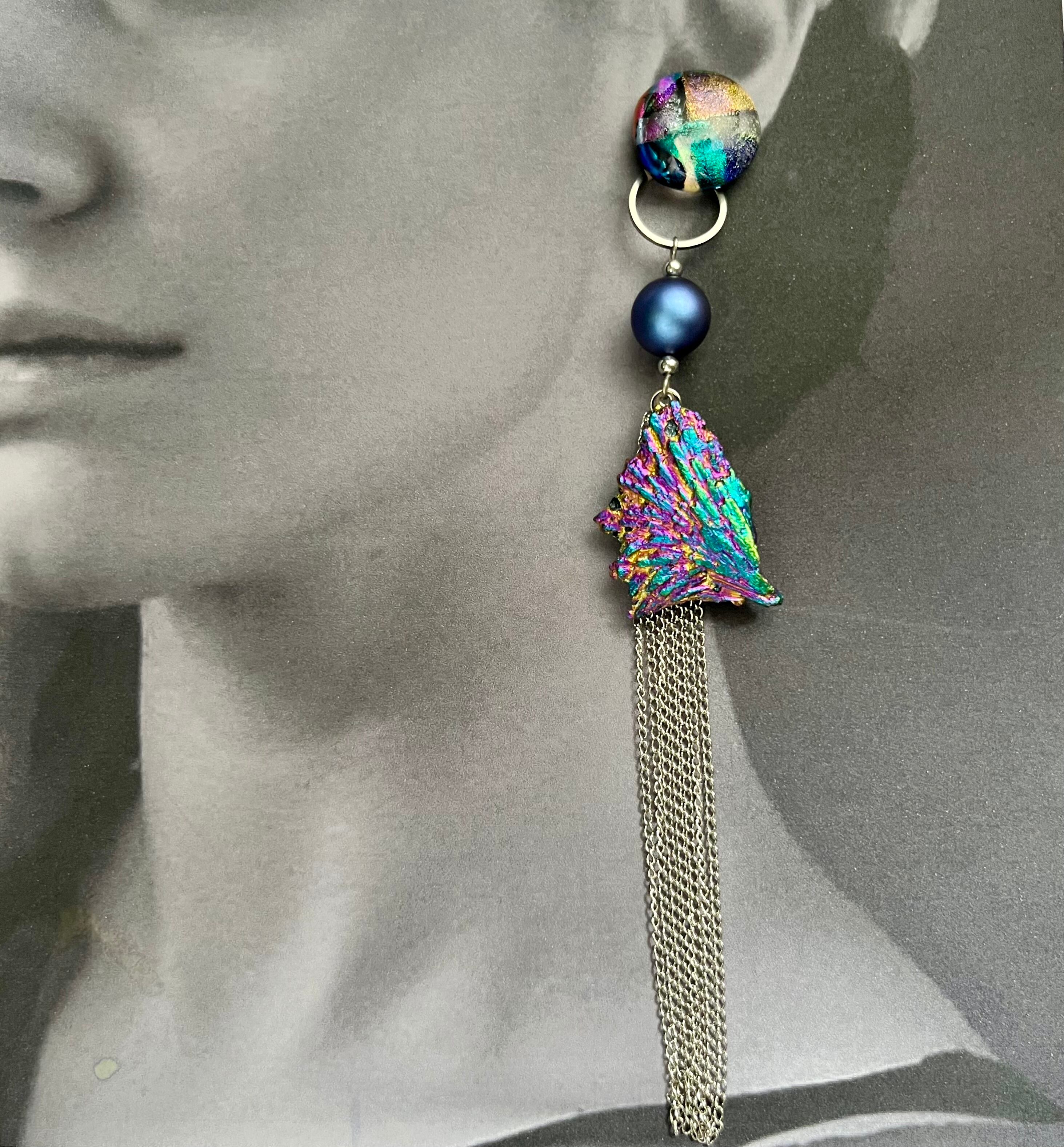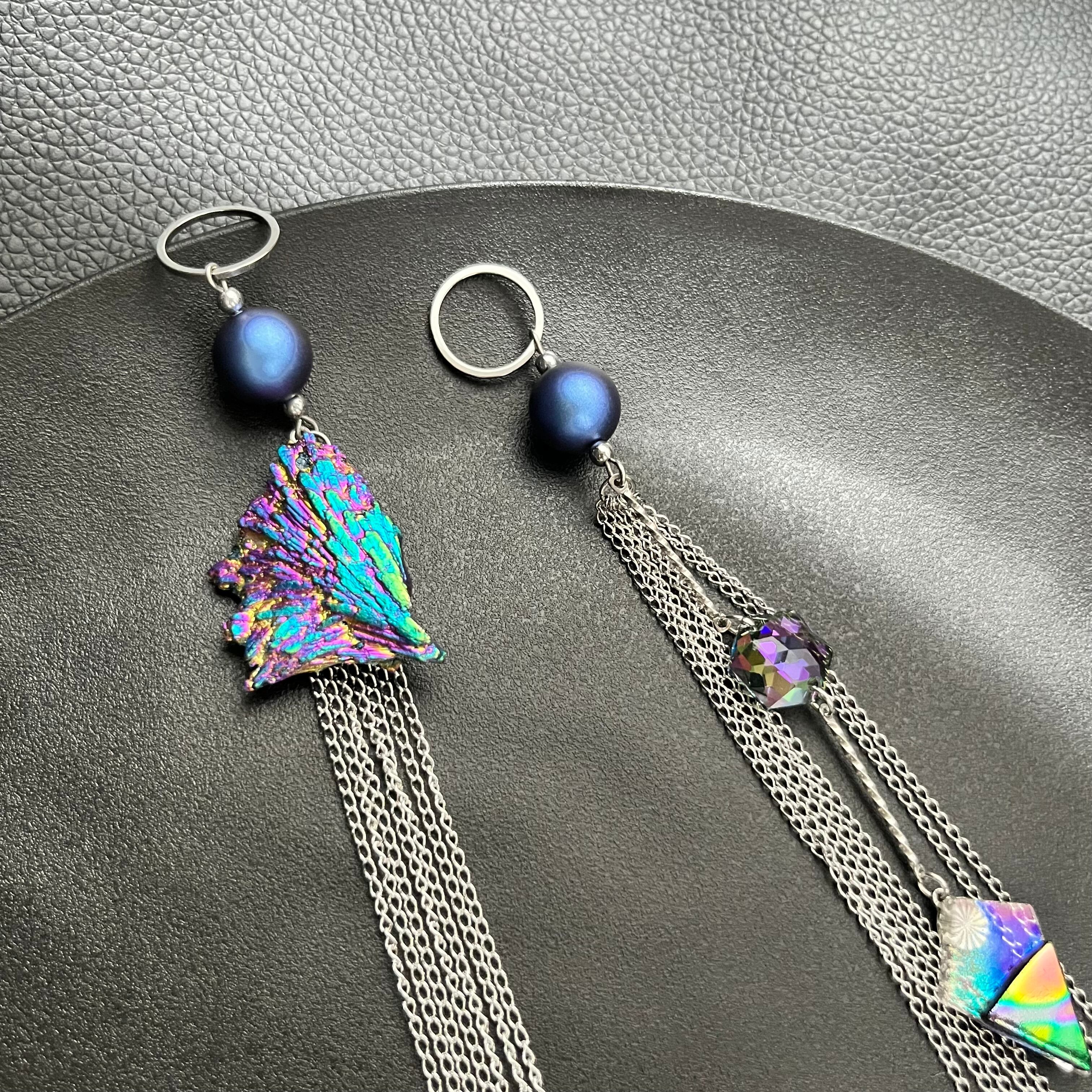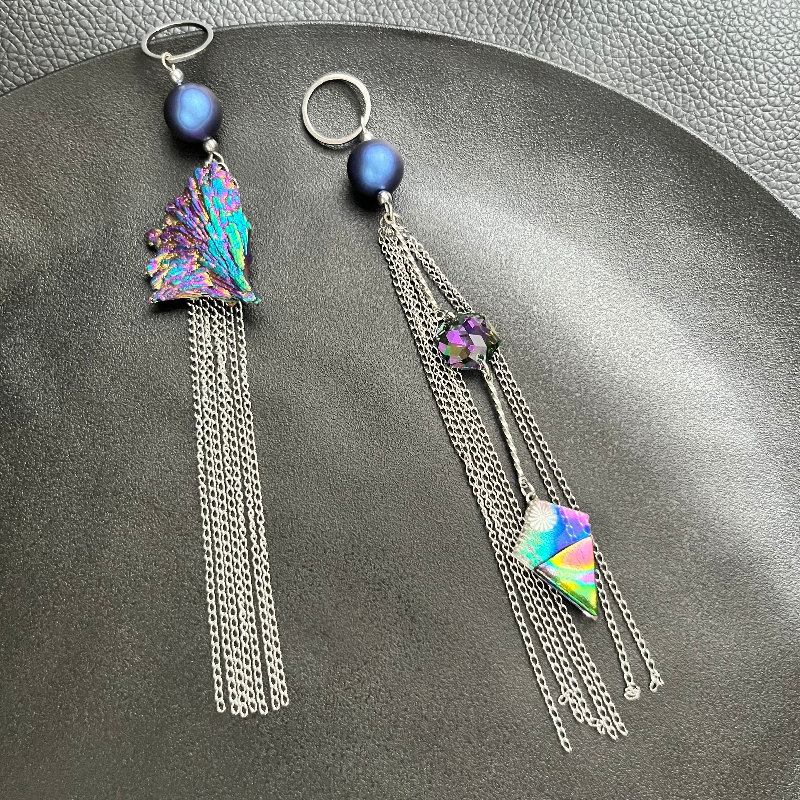 無限の宇宙★ ガラスピアスorイヤリング 2way仕様 虹色トルマリン