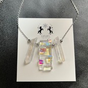 オーロラ宇宙の鍵と水晶★ 薄紫色オーロラガラスと水晶のペンダント