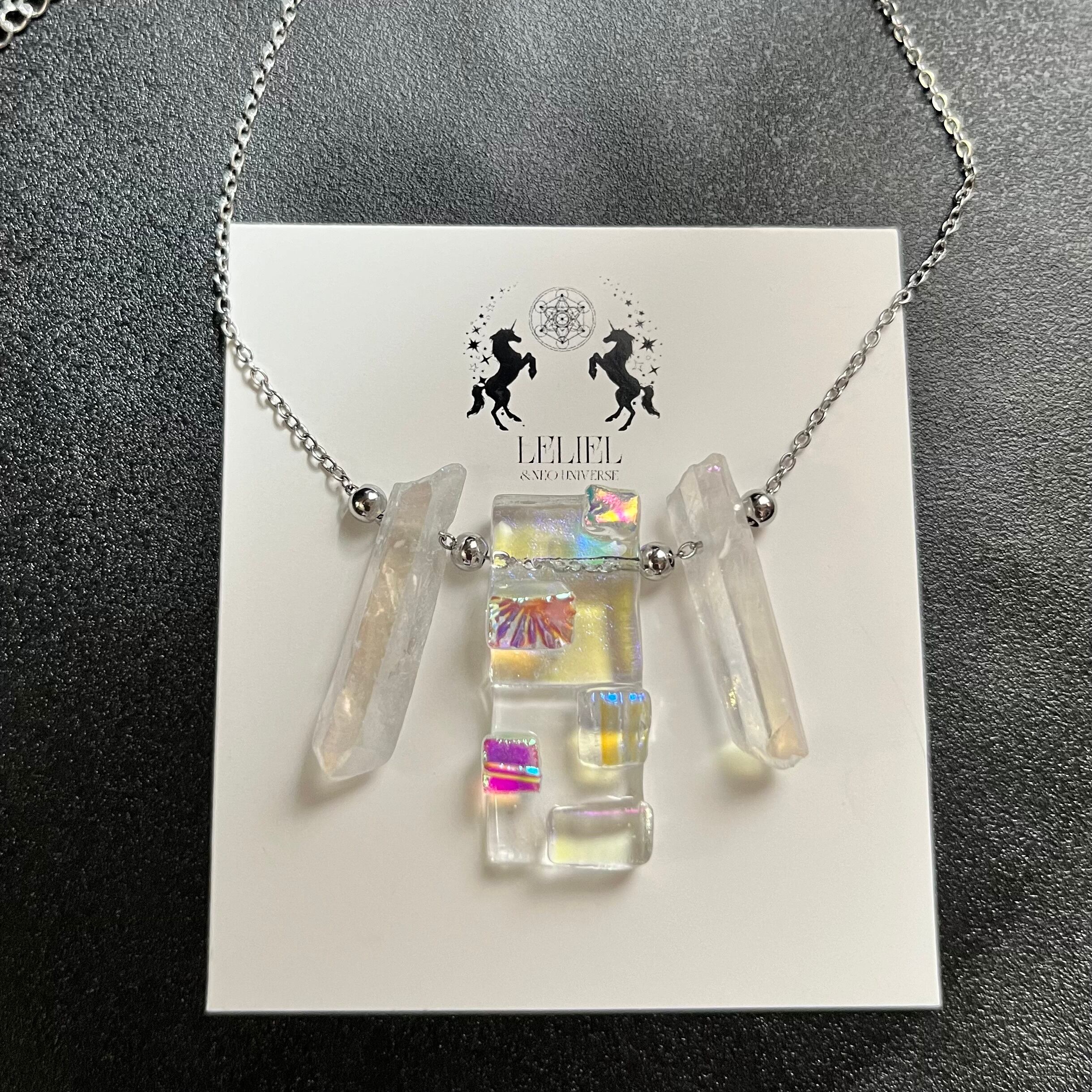 宇宙のエネルギーを感じる薄紫のオーロラガラスの輝きと水晶の透明感が、あなたの心を癒し、幸せな気分に導きますように。